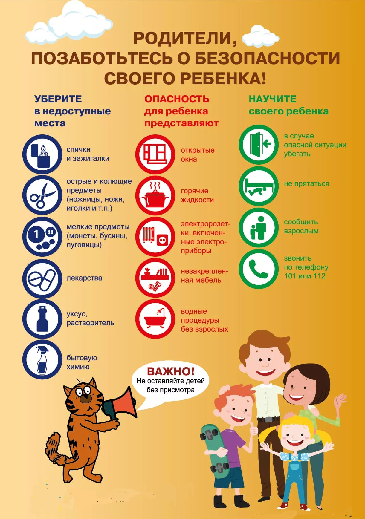 Помните, что от природы дети беспечны и доверчивы. Внимание у детей бывает рассеянным. Поэтому, чем чаще вы напоминаете ребенку несложные правила поведения, тем больше вероятность, что он их запомнит, и будет применять!