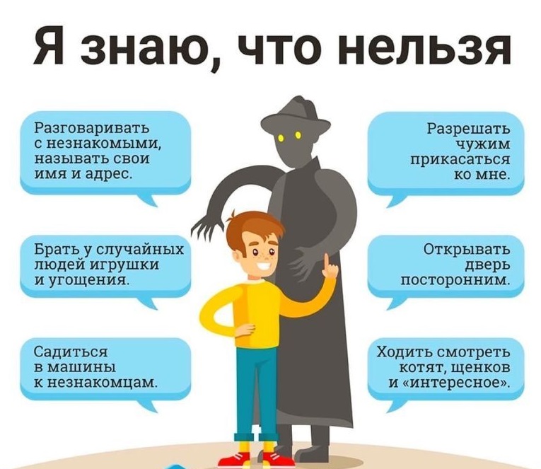 -Не разрешайте детям разговаривать с незнакомыми людьми, садиться в незнакомый транспорт, трогать незнакомые предметы (о подозрительных людях и предметах немедленно сообщать взрослым).