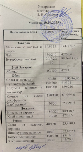 Информация об утвержденном меню ежедневно помещается на информационных стендах в групповых помещениях детского сада.