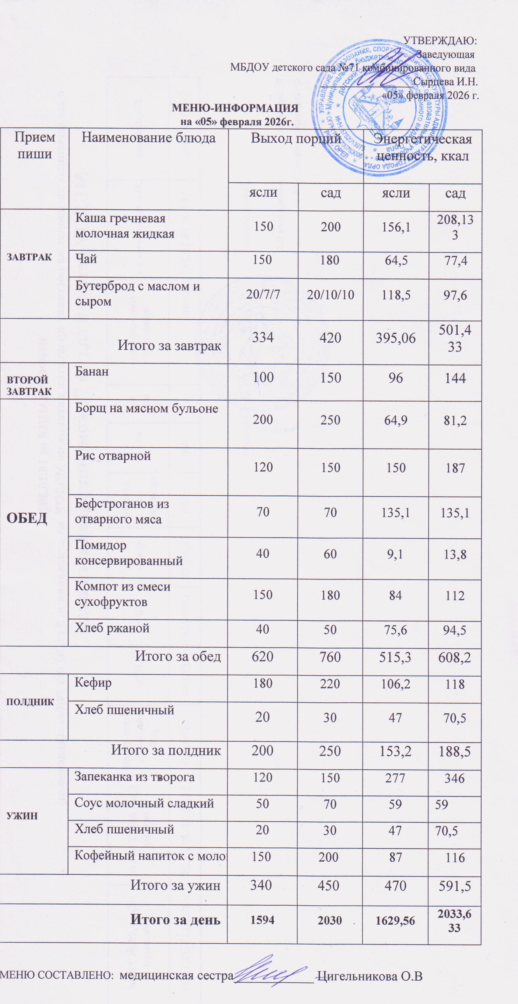 Меню на 05.02.26