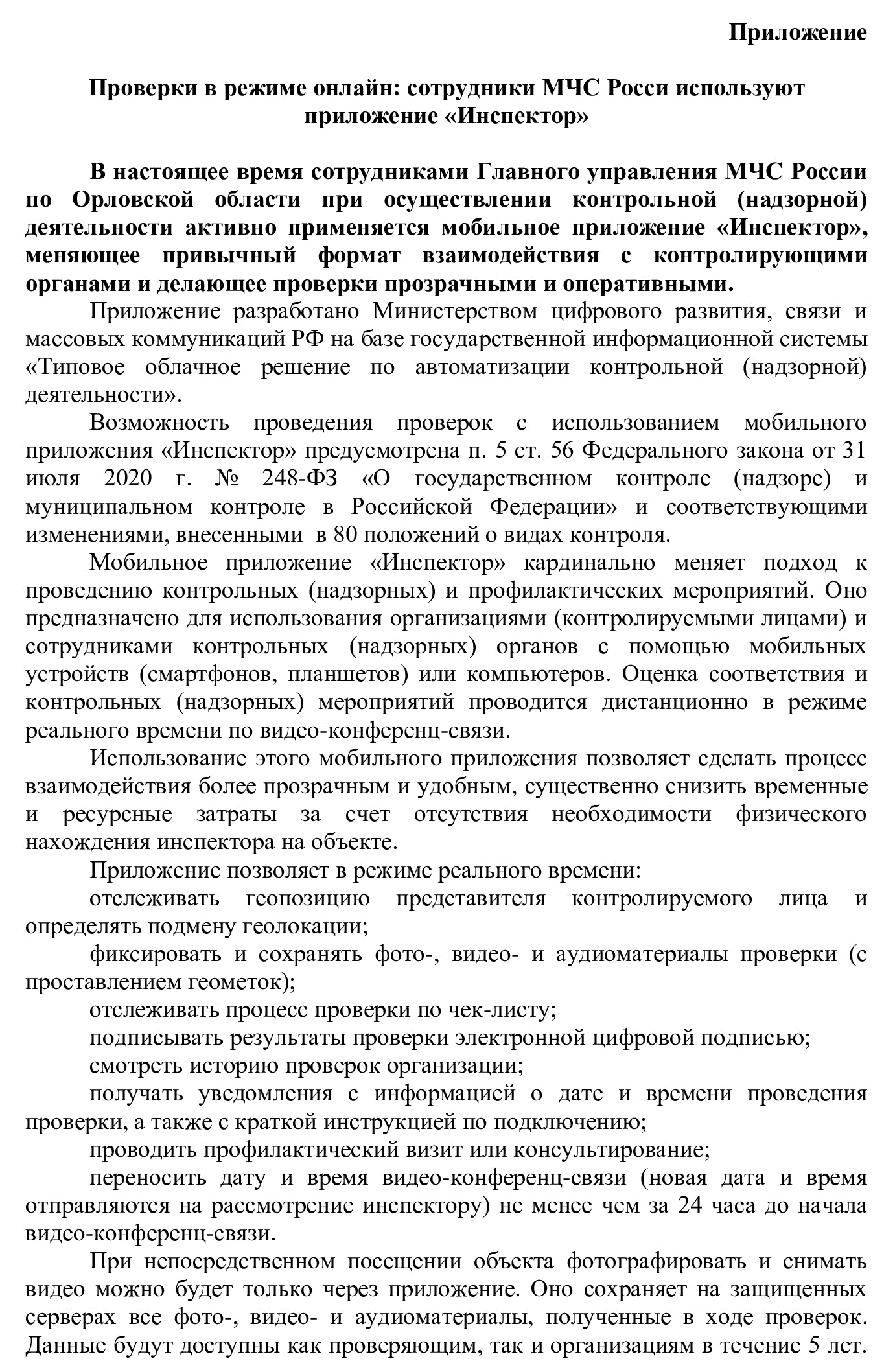 Проверки в режиме онлайн: сотрудники МЧС России используют приложение "Инспектор"